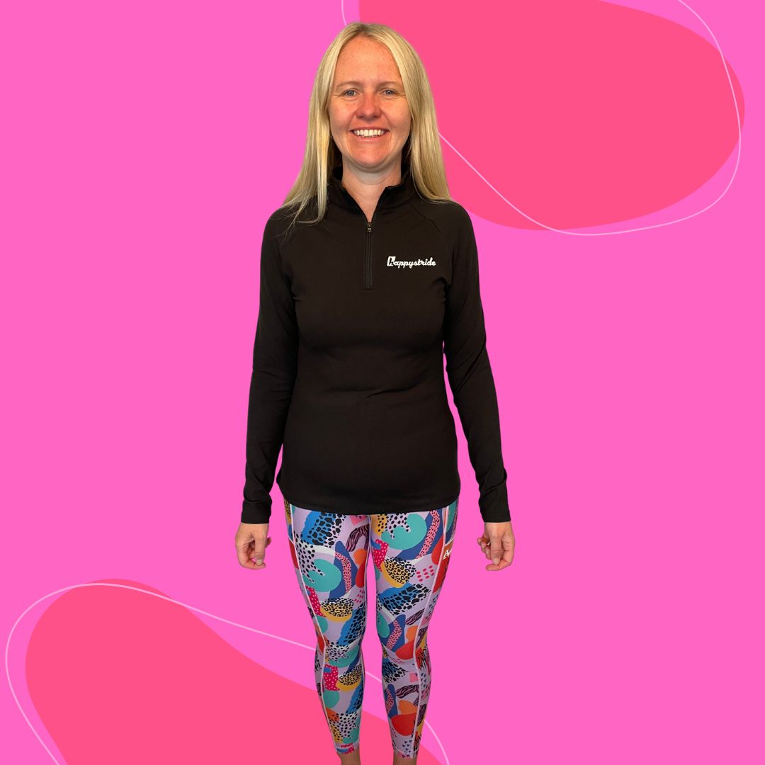 Running makes you happy but you don't fancy standing out on the start line? Well, we have something for everyone! Check out this ''Basic b*tch'' black running & fitness women's half-zip top.