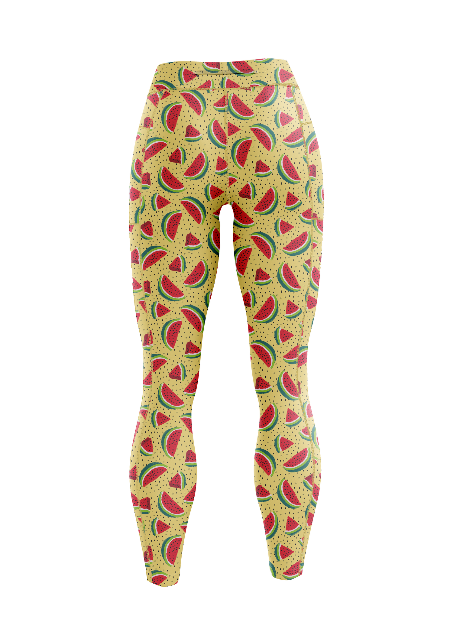 These super fruity yellow leggings covered in juicy watermelon slices are perfect for summer and beyond. You'll be sure to attract some compliments when you wear these bad boys!