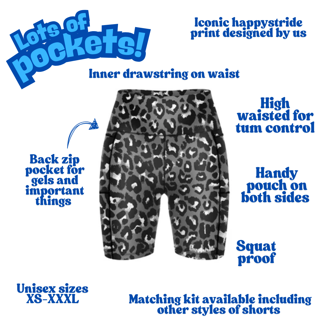 Get spotted in these smokey leopard print fitted running & fitness shorts.