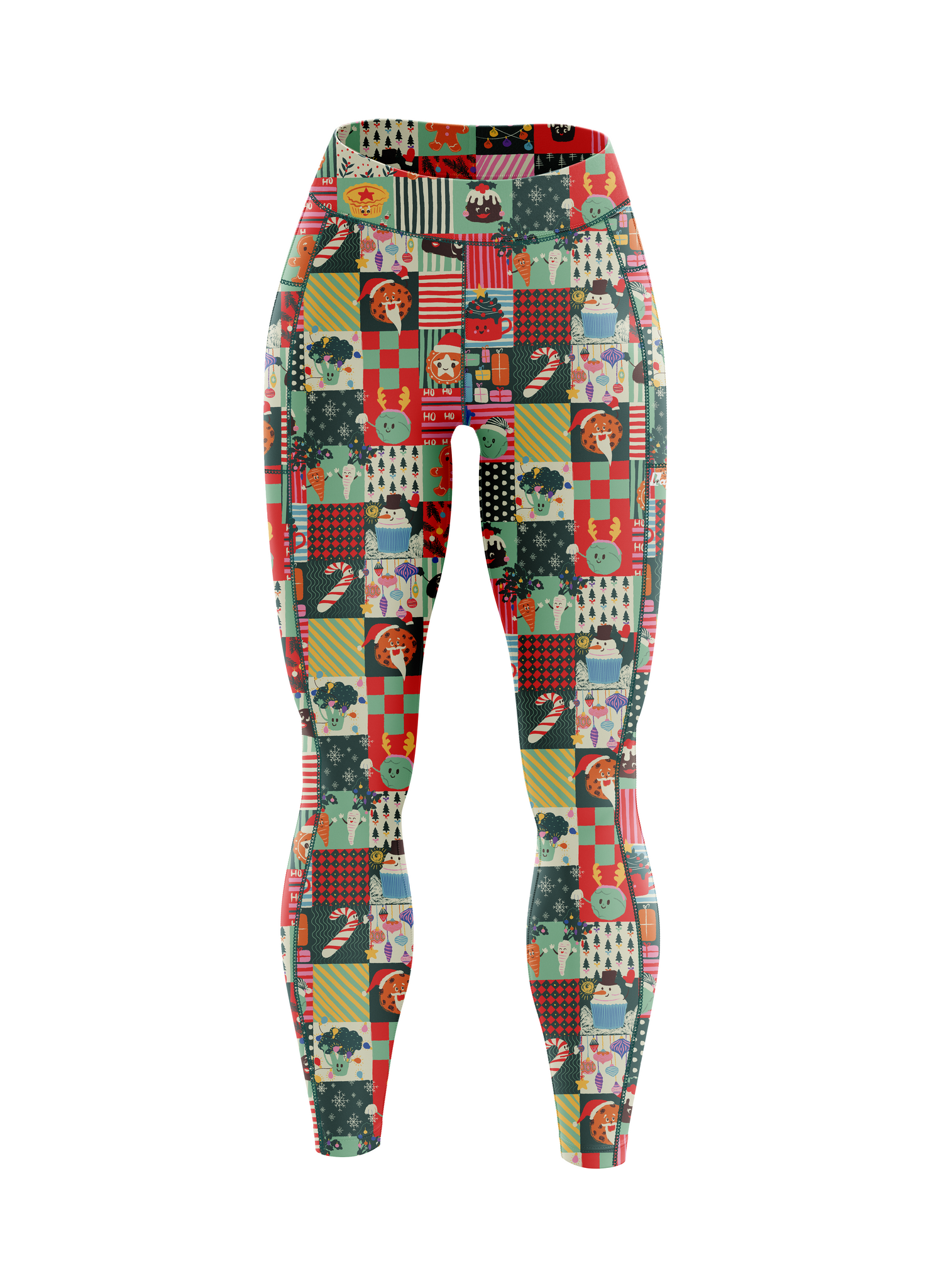 Get ready to sleigh your runs this Christmas with our Merry Munchies leggings! A patchwork of festive fun, these beauties are bursting with cheeky Christmas icons — from mince pies, christmas puddings and of course, Brussels sprouts!