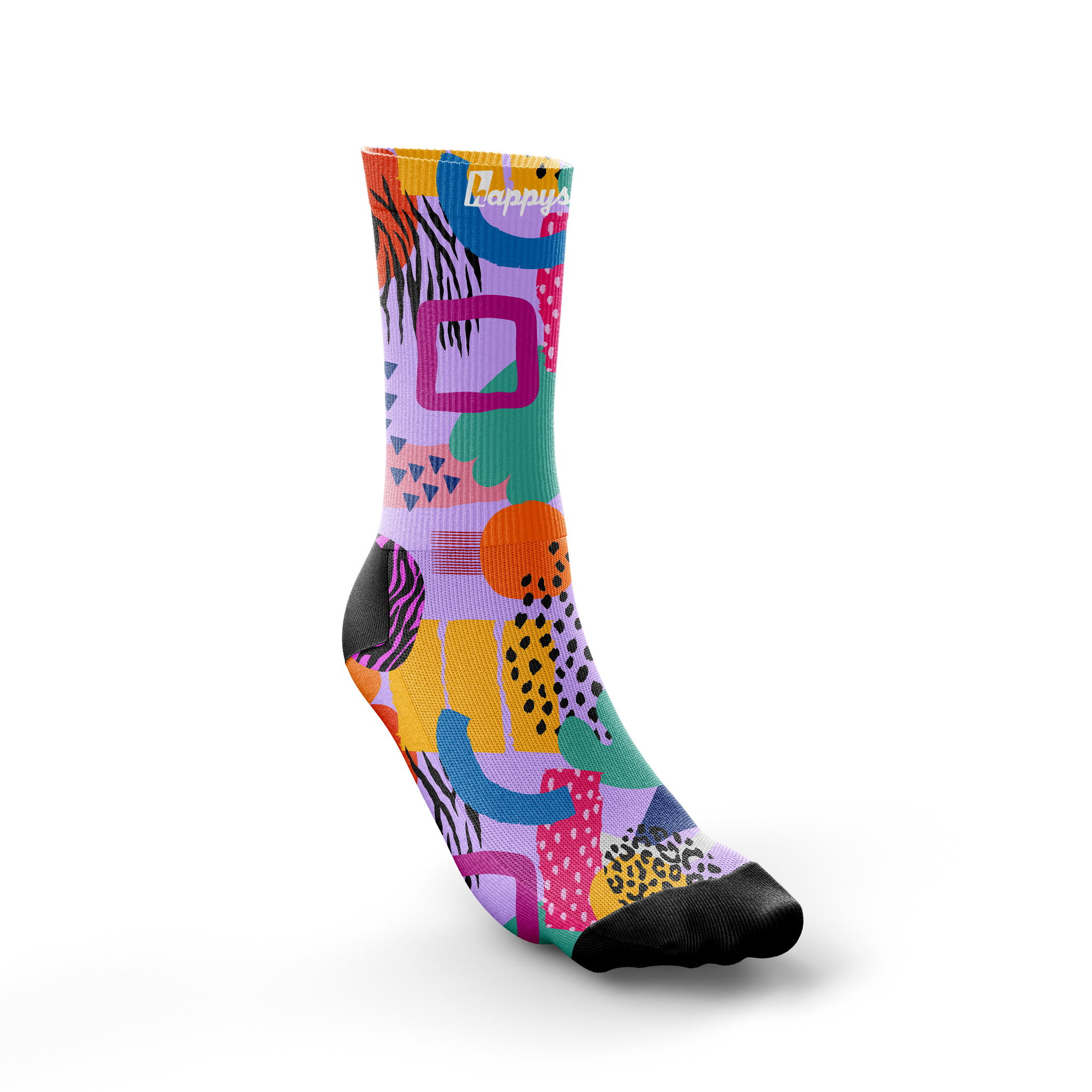 If you like to party (but you like running more), then this really cool pair of lilac based unisex running and fitness crew socks are for you! They feature loads of cool shapes in red, green, purple, orange, yellow etc and have a retro but modern feel. These socks will be sure to make you feel the part whether you're training or racing... or whatever you're up to!