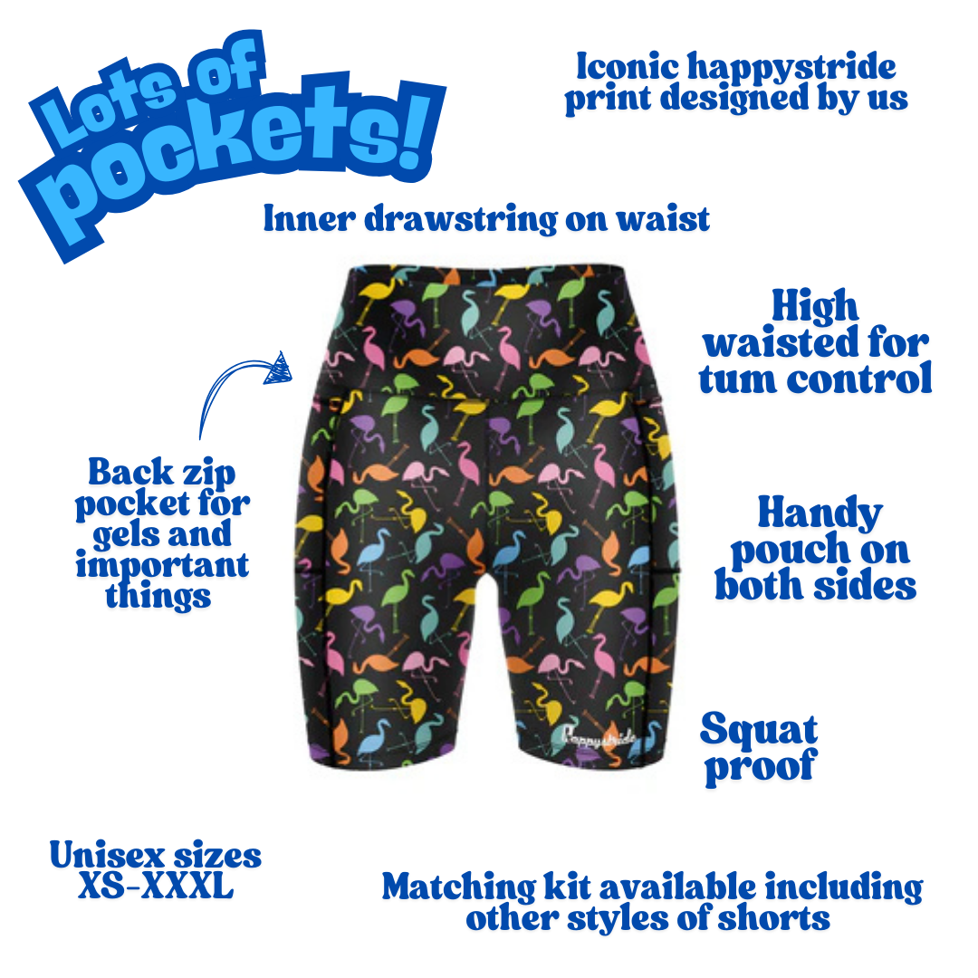 Einstein said “Flamingos show us that standing out from the crowd can be a beautiful thing.” .... and standing out in a crowd is our thing! These classy flamingo unisex running and fitness shorts on a black background will certainly help you stand out but in a subtle and cool way. Unless you wear them and stand on one leg, then you might get some funny looks!! This design is also available in our classic shorts, so you can go matchy-matchy with a friend.