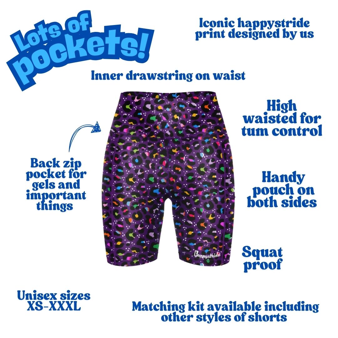 Unleash your inner animal and hit the ground running with our "Get Spotted - Pop" shorts. Part of our ever popular ‘get spotted’ range, these are a bold, multi-coloured leopard print choice with a striking vibrant purple background. Available in our classic and fitted shorts.