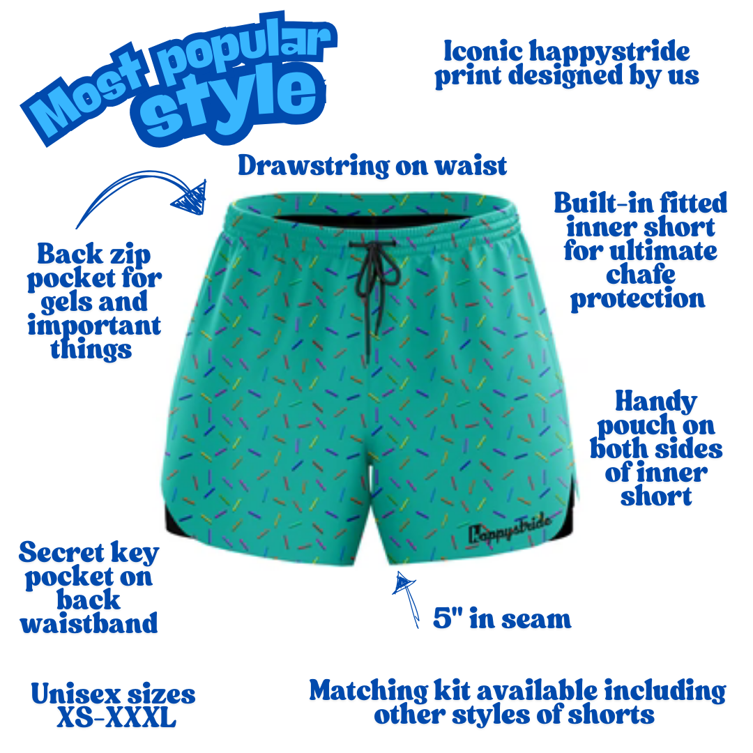 Check out these cool minty sprinkle patterned unisex running & fitness shorts with blue, green, yellow, orange, purple, pink and red sprinkles.